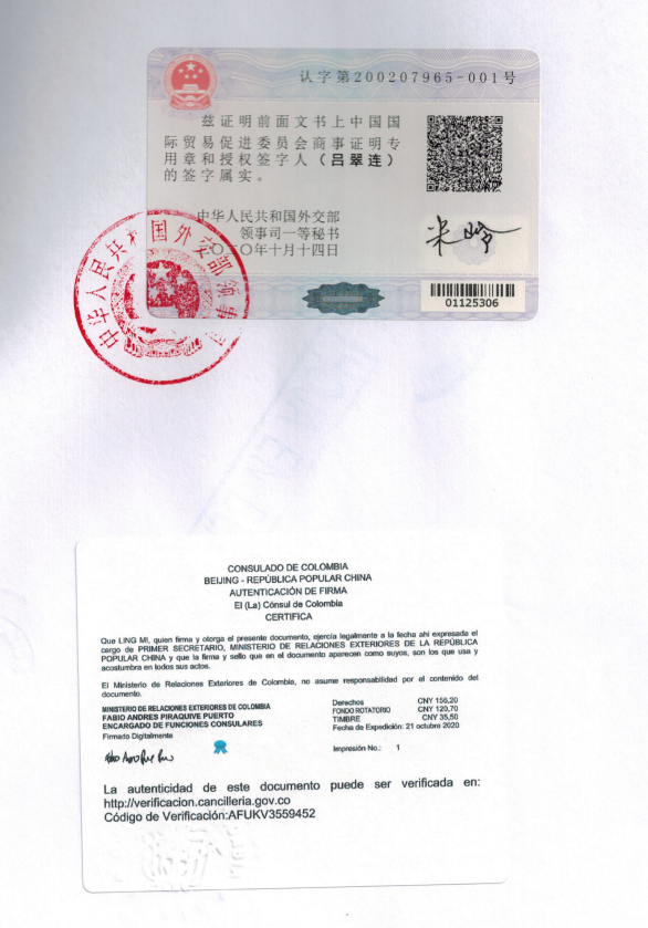 本文鏈接:專注進口清關(guān)代理、代理進口單證、ATA單證報關(guān)、臨時進出口代理服務(wù),出口代理,出口報關(guān)、國際貨運代理;請聯(lián)系我們:400-888-0577 。 | 哥倫比亞使館認(rèn)證 | |